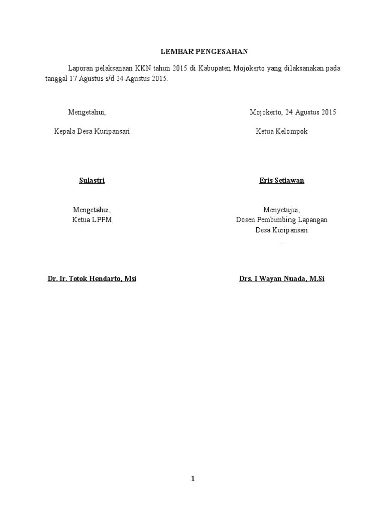 Sebagai pertanggungjawaban telah kami susun laporan kelompok kkn semester. Karya ilmiah ini diajukan oleh. Mulai dari lembar pengesahan proposal, makalah, skripsi,. Lembar pengesahan laporan praktek kerja lapangan (pkl) (diajukan untuk melengkapi persyaratan dalam mengikuti ujian akhir nasional sekolah menengah kejuran . Yang bertanda tangan di bawah ini,.